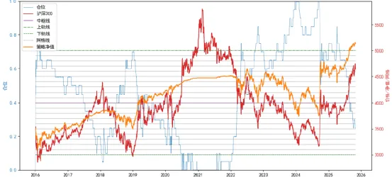 关键是正视网格投资的优势区间——它的回撤控制非常好。收益率没有战胜市场是很多投资方法的常态。2016年-2025年10月的测试区间内,网格化投资以微弱的收益率劣势,换来的是回撤和波动大幅改善,应该说网格投资的优势在于以较低的资金占用率实现震荡市中较为稳健的回报,战胜市场确实不是他的优势和目标。