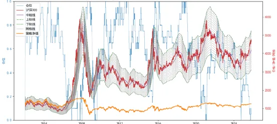 那动态网格中枢呢?更不行,动态的网格中枢是跟上了行情变化,但仍然在趋势行情波段表现极差。趋势上涨初期就已突破网格上沿,在网格卖出信号下仓位降至0,错过了主涨段;趋势下跌初期又在持续入场。可以看到07、15年的趋势行情中,网格开始严重跑输指数甚至亏损,指数经历大涨大跌后仍提高了一个台阶,但网格收益却下了一个台阶。